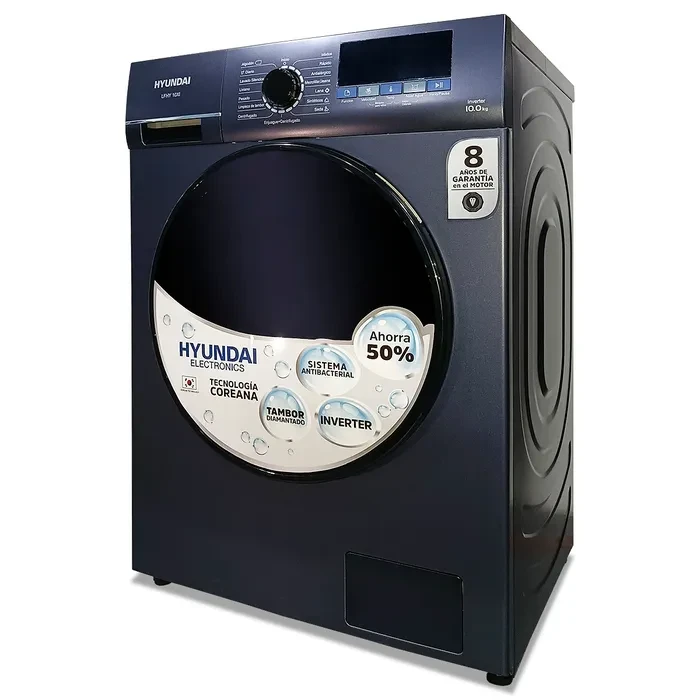 | Lavadora HYUNDAI de Carga Frontal Capacidad de 10Kg Motor Inverter 16 programas de lavado Doble entrada de agua 1.400 RPM Color Black Inox |