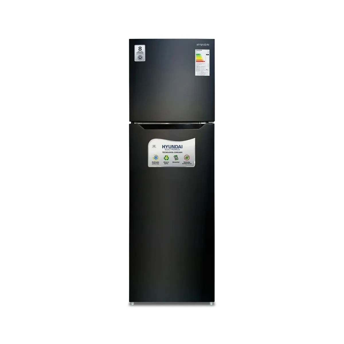 Refrigerador Capacidad de 440 Litros Hielo Seco Color Black Inox Dos Puertas HYUNDAI